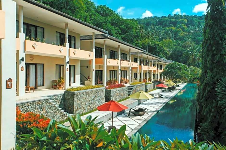 Senggigi’s coastal charm sets the scene at Kebun Villas & Resort, a 4-star retreat just 0,2 mi from the city center on Jl. Senggigi Raya Km. 8, Lombok. Accommodations feature balconies or terraces with garden or mountain views, air conditioning, and extra-long beds for added comfort.